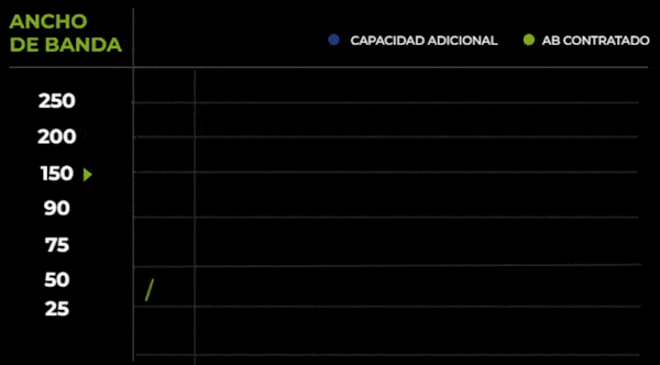 Con este servicio opcional su circuito tendrá disponible una capacidad de ancho de banda adicional para ser utilizada en los días de consumos pico de Internet, sean predecibles por el comportamiento de su empresa o inesperados ante una emergencia o situación.